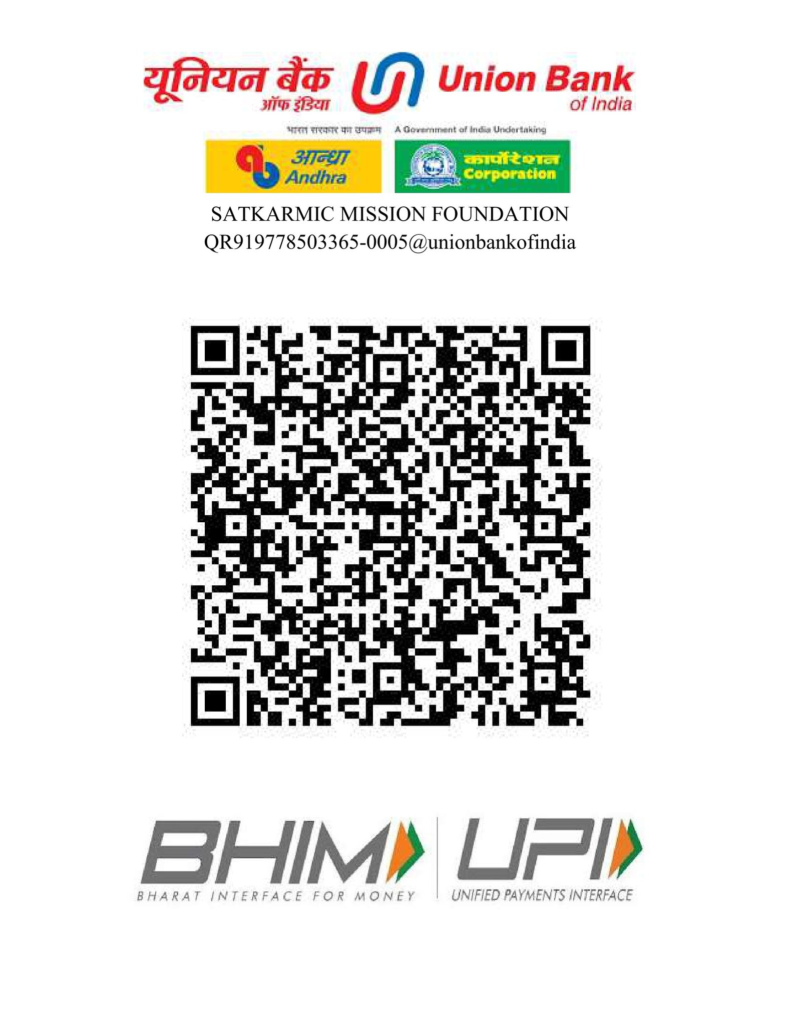 - Account Name: Satkarmic Mission Foundation
